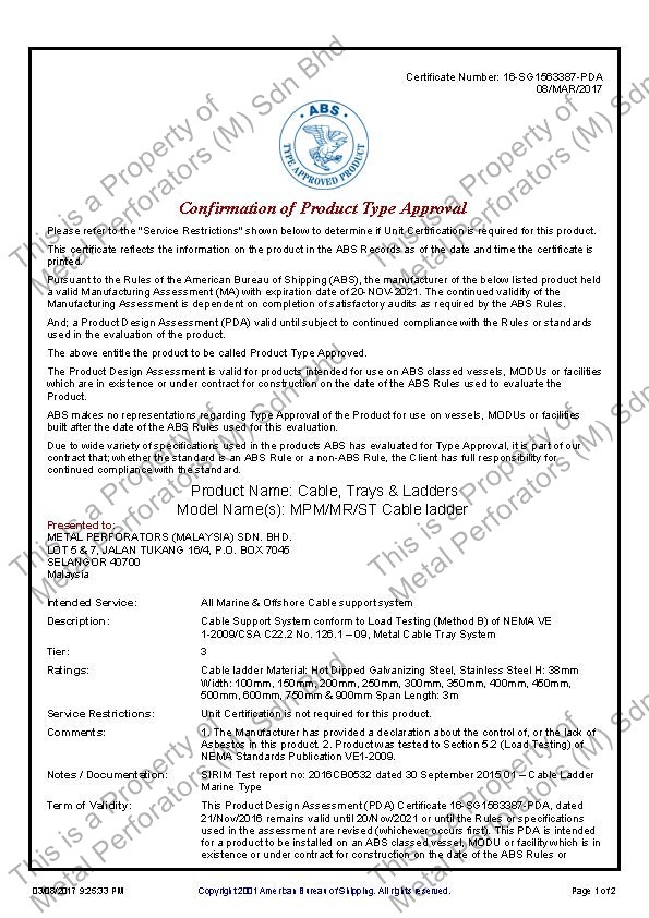 Metal Perforators (M) Sdn Bhd - Malaysia's Manufacturer Specialized in Perforation, Cable Tray, Ladder, Trunking, Ducting, Unistrut Channel,Screen Plates using Stainless Steel, Mild Steel Galvanized & EPOXY Power Coating